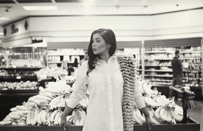 Our final installment of Aisle 14 is called White. This was the outfit that really stood out to me most because it’s a bit of classic mixed with quirky. In terms of art direction, Nida Rehman and I wanted the simple white outfit against a vibrant backdrop and I think the richness of the produce behind contrasted the outfit best. Enjoy!