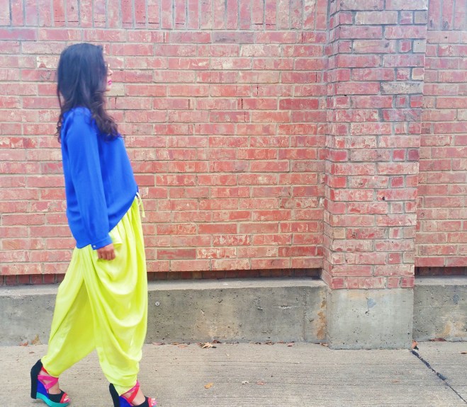 So how can your work with the overwhelming silhouette of dhotis? Well dhoti pants are loose and flowy, so pair it with a fitted top. Or don’t and work the whole boho thing, but be mindful because dhotis can overwhelm your thighs and make you look fat. Dhotis are distinctly different than harem pants, patialas, and palazzos. The difference is how the hem hits your ankles. It brings a focus to your feet, so use that to draw attention to funky statement shoes. I can list so many other things, but the best way is to experiment and have fun. And if all else fails, wear it to Coachella. Most importantly, be confident and wear it proud! We can’t let Kendall Jenner do it better than us, yall. Because she will if we don’t reclaim our dhotis! #reclaimthedhoti